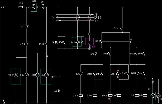 為便于大家理解,下圖是GGD電氣柜、現場(chǎng)操作箱和DCS系統三地控制的電氣二次控制原理圖